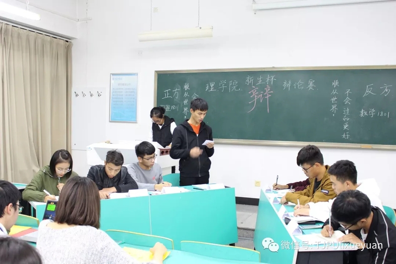 第二场,第二场比赛,作为反方的数学1801班,发挥出色,在“顺从世界,会不会过得更好”的辩论中战胜了正方的物理1801班。
