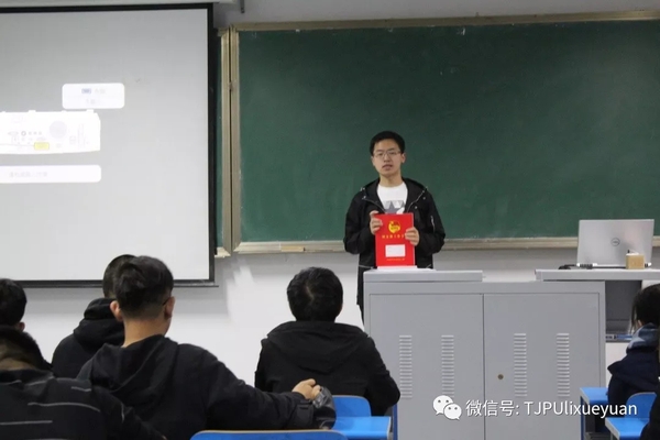 在庄严的共青团团歌中,大学习正式拉开帷幕,会上首先由赵泽宁同学带领大家复习了三会两制一课的主要内容,同时通过播放《共青团公开课之“三会两制一课”》专题视频课程,让同学们更直观的学习团务知识。随后,学院团委向团支部发放了《团支部工作手册》,并对《团支部工作手册》的具体填写方法做了详细的讲解。会议最后由学院团委书记胡洋老师回答了在场同学们的问题,同时对基层团支部工作提出了要求,并希望大家要做团员和青年的表率,模范的履行团员义务,刻苦学习,勤奋工作,敢于创造,自觉奉献,永远跟党走。