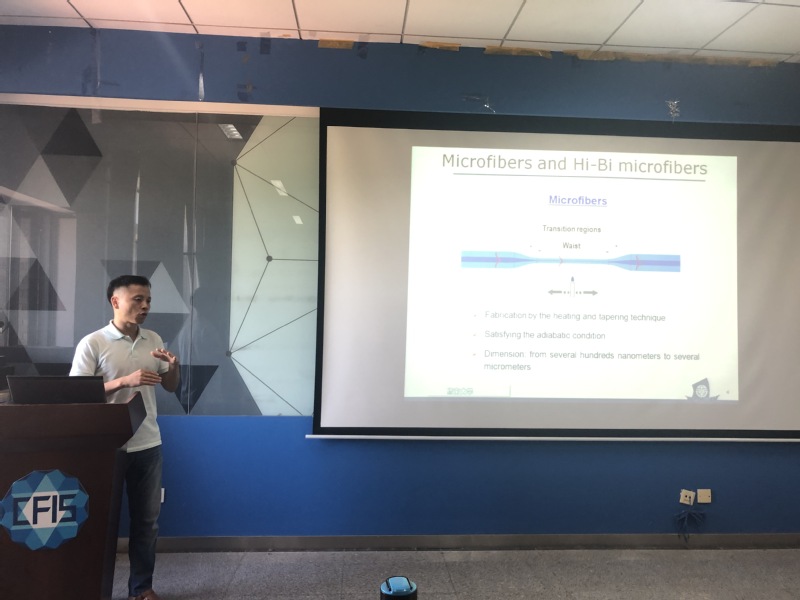 报告会上,李杰教授首先介绍了微纳光纤的概念以及其高强倏逝场作用,随后针对自己研究团队的研究内容,从光纤结构类型、制备方法和模式双折射等特性出发,介绍了利用保偏微纳光纤在两个垂直偏振方向的倏逝场对外界的不同响应,尤其是充分利用其群双折射效应,制备高灵敏度的传感器件的方法,最后介绍了保偏微纳光纤倏逝场传感器在折射率、湿度、磁场和特异性DNA分子探测等方面的应用。报告结束后,李杰教授与研究生和教师就报告的内容开展了深入的讨论。