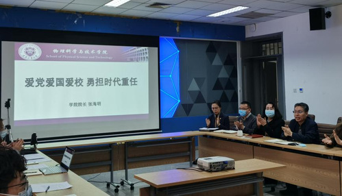 随后,学院院长张海明围绕“爱党爱国爱校 勇担时代重任”开展理想信念教育。张海明院长谈到,爱党是每一个中国人心底最感佩最真挚最笃定的信仰,爱国是每一个中华儿女心底最深沉最纯洁最无私的情感,爱校是每一个天工人心底最朴素最眷恋最美好的乡愁。作为一名天工学子,要把爱党爱国爱校牢记心中,继续传承红色基因、勇担时代重任、发扬天工精神,把爱党爱国爱校之情内化于心、外化于行,为中华民族伟大复兴贡献青春力量。