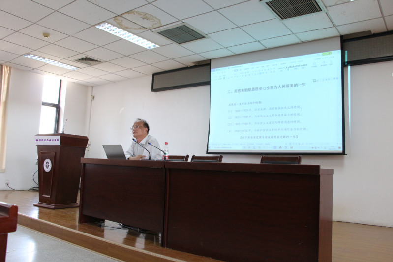 讲座围绕周恩来光辉的一生及对党和国家重大历史贡献来对周恩来同志生平事迹进行讲述,从习近平总书记代表党中央对周恩来同志的最新评价、周恩来同志勤勤恳恳全心全意为人民服务的一生、周恩来同志对党和国家建设作出的重要历史贡献以及周恩来崇高精神风范的丰富内涵四个方面进行了讲解和评述,总结出周恩来同志身上所展现出的始终坚守共产主义信仰、全心全意为人民服务、求真务实、严格自律等崇高精神和高尚品德。