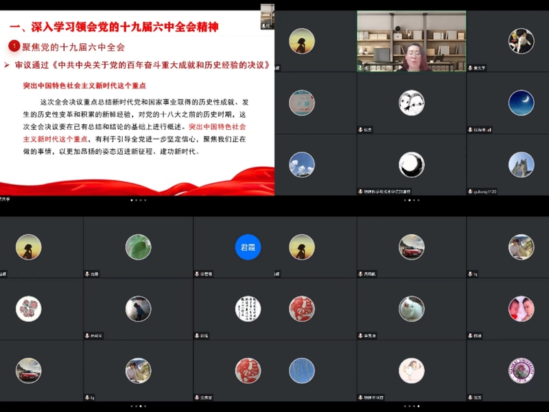 2022年5月17日晚,伟德国际VICTOR1946党委书记成玲以“深刻理解‘两个确立’的决定性意义,担当铸忠诚,奋进新时代”为题讲授专题党课。本次专题党课是深入学习贯彻习近平新时代中国特色社会主义思想和党的十九届六中全会精神的一次主题宣讲,也是学院党委理论学习中心组扩大学习和干部专题培训。学院党委委员、学院领导班子成员、各基层党支部书记、各系室(中心)主任以及各办公室行政管理人员聆听了本次党课。