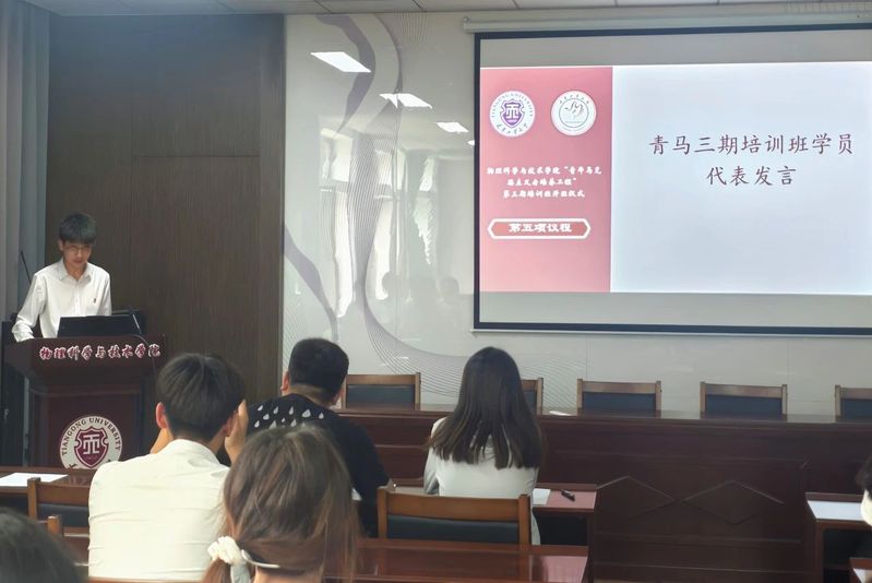 “青马工程”第三期学员代表崔明鑫发言,崔明鑫同学表示,在今后的学习实践中将进一步提升政治素养与工作能力,传承青马精神,努力成为“政治坚定、作风过硬”的新时代青年。