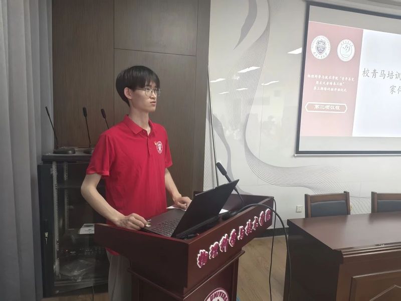 “青马工程”第二期学员代表范静雯进行学习成果汇报。回顾过去一年在“青马工程”中理论学习与社会实践的双重淬炼,不仅深化了对马克思主义的理解,更在服务同学、投身校园建设中体会到青年责任。