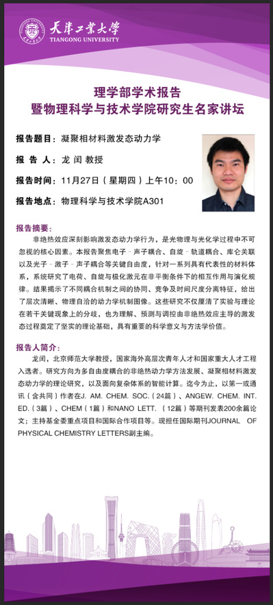 报告题目:凝聚相材料激发态动力学